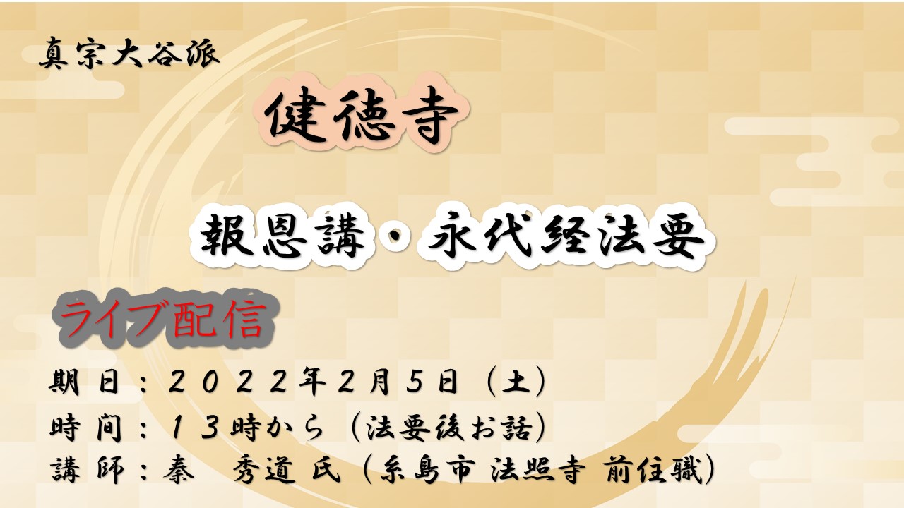 過日お知らせいたしました、健徳寺「報恩講・永代経法要」の厳修につきまして、ライブ配信を行います。
