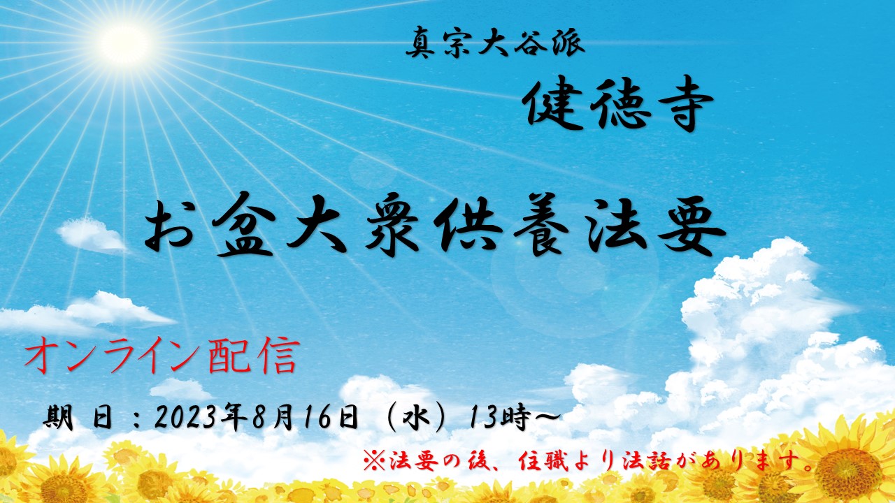 この度下記の通り「お盆大衆供養法要」を厳修いたします。